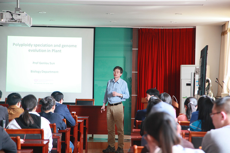 Professor Sun深入浅出的讲解,让在座师生对多倍体对植物进化的意义有了更为深刻的认识,参与本次学术报告会的师生积极提问,并在与Professor Sun的交流中拓宽了知识面。报告在掌声中圆满结束。据悉,Professor Sun长期以来从事植物分子遗传研究,研究多倍体的起源进化,并首次提出利用已培育的不同品种作为基因定位的群体可能性,研究成果为通过生物技术改良农作物相关研究提供了理论基础。