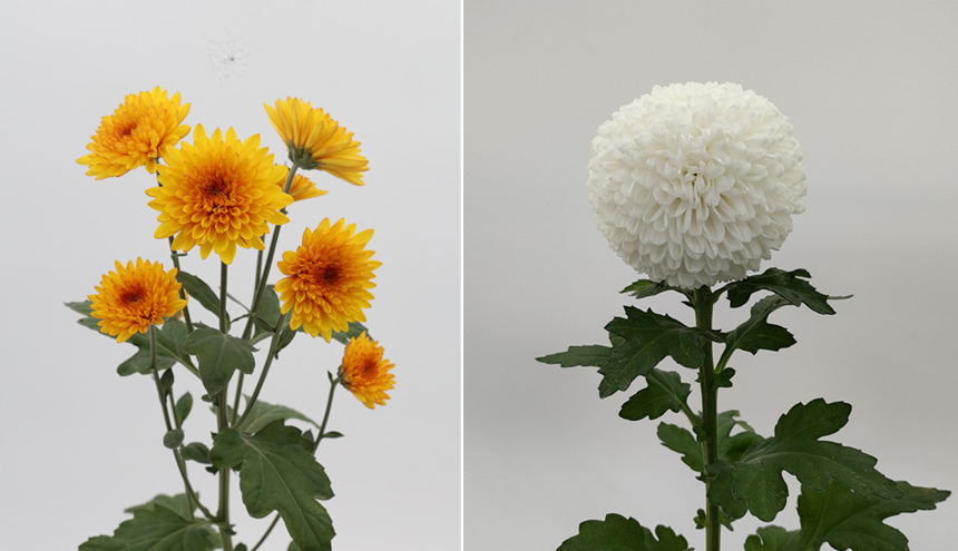 摘获金奖的切花菊‘南农锦心’和‘南农白乒乓’