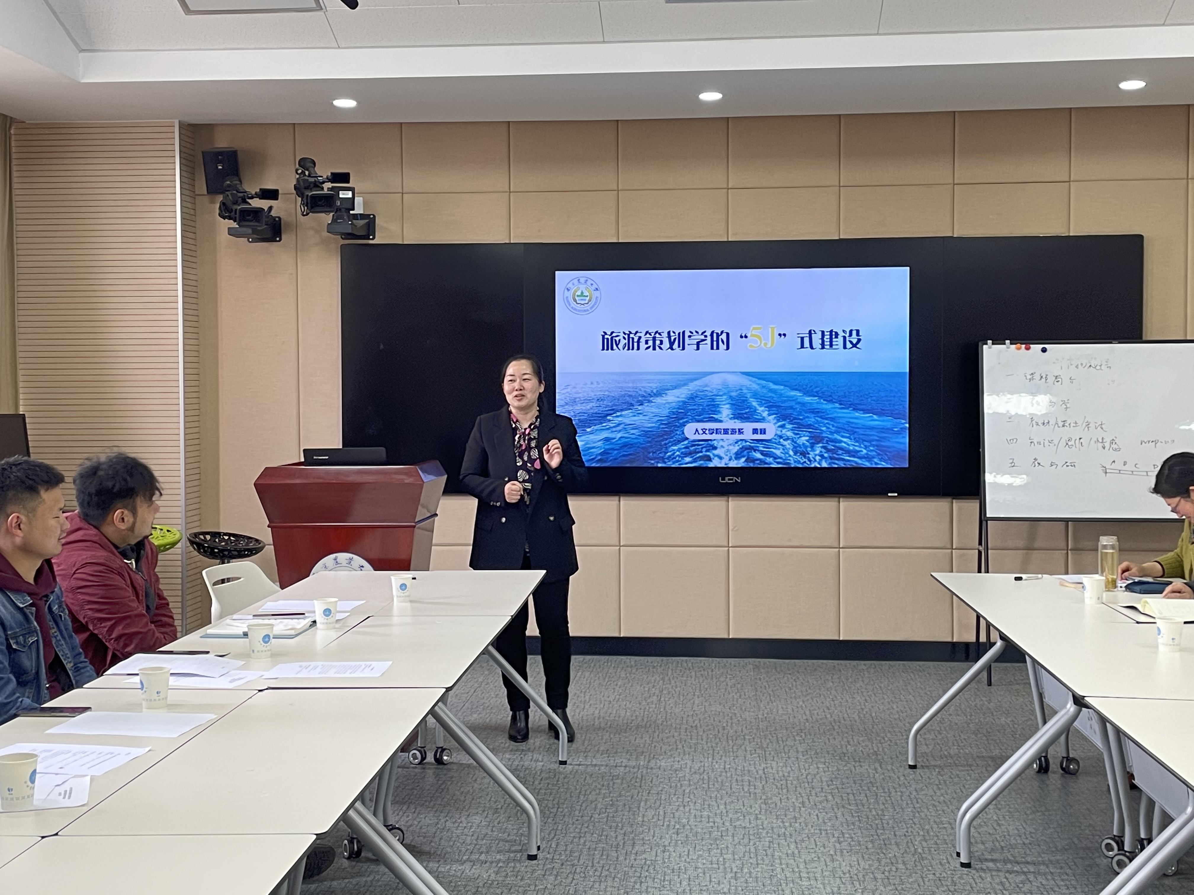 沙龙活动正式开始,丁晓蕾以《青年教师教学成长的几个关注点》为题,主要从教学理念、教学准备和教学实践三个方面启发青年教师在教学过程中应注意的一些要点,并如何将教学理念运用到实际教学中去。刘正辉以自己主讲的《作物栽培学》课程为例,讲述了课程建设和教学设计方面的心得,同时现场分享了该课程的手写教案、课件、学生反馈卡片,引起了青年教师的广泛讨论和关注。黄颖以《旅游策划学的“5J”式建设》为题,介绍了《旅游策划学》从课程设计到学生反馈的整个教学过程,让304am永利集团官网青年教师从人文社科类课程的教学中学习了一些新的教学方式。