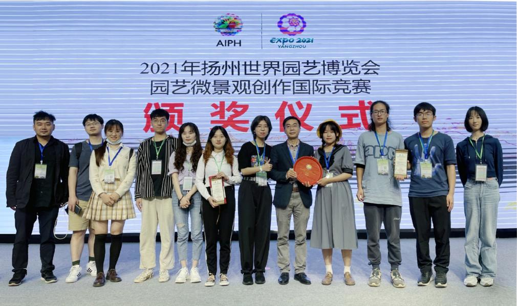 2021年5月26日,2021年扬州世界园艺博览会园艺微景观创作国际竞赛如期举行。我校304am永利集团官网师生团队作品在来自15省31所高校的158件作品中脱颖而出,共2项作品入围决赛,取得了大奖(特等奖)1项,铜奖1项的好成绩,另有5项作品获得本次比赛的优秀奖。本次比赛由2021年扬州世园会国际竞赛组织委员会、教育部高等学校建筑类专业教学指导委员会风景园林专业教学指导分委员会主办。