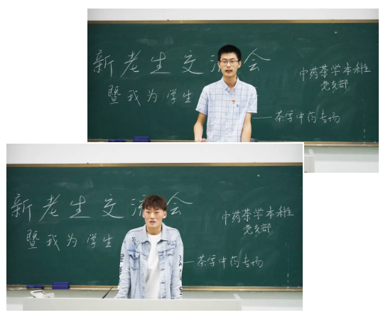 本次交流会由党支部和毕业班4位同学为2021级新生做入党初心、学业规划、大学适应等方面的交流分享。首先,中药专业苏煜楹从一位大四学姐的角度为新生介绍了中药专业课程内容及实训,重点分享了自己的学习心得和保研经历,针对重点课程介绍了自己学习方法供新生们参考,并鼓励大家积极发展兴趣爱好,加入学生组织,丰富课余生活。茶学专业何林彤以自身经历为学弟学妹们讲诉了自己的茶学初印象、如何喜欢上这个专业和成功保研的故事,希望学弟学妹们明确目标、尽早规划。