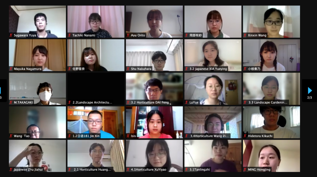项目组织实施有条不紊。项目设置了课程说明会、开班仪式、线上授课、中日学生互动交流等环节,为双方师生提供了充分的交流机会,同时还通过课前学习资料发放、课堂师生互动、课后作业布置与检查,以及课程报告批改等形式,确保知识互动和学习效果反馈。日本千叶大学园艺学部30名大二学生及304am永利集团官网和外语学院的20余名志愿者参与了本次暑期线上留学项目。