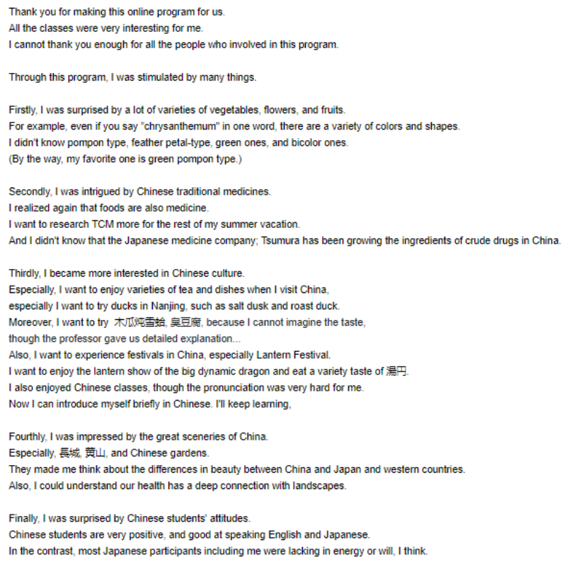 线上交流项目千叶大学学生感想