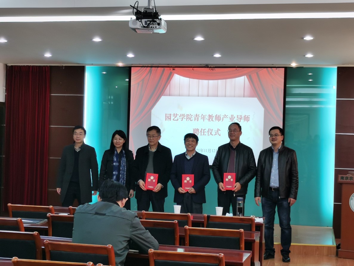 随后,学院领导为三位产业导师颁发了聘任证书并合影留念。最后,张绍铃教授代表产业导师,以自身为例,介绍熟悉和了解产业发展对青年教师成长和全面发展的重要性,鼓励青年老师多主动走进产业一线,并将科研与产业有机结合,从产业中寻找科学问题,围绕产业问题开展科学研究,以科研反哺教学,以科研成果落地推动产业发展。