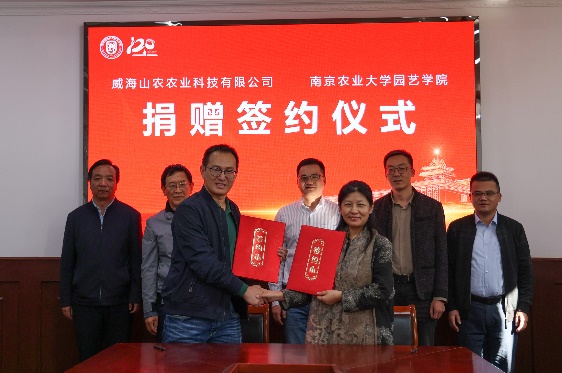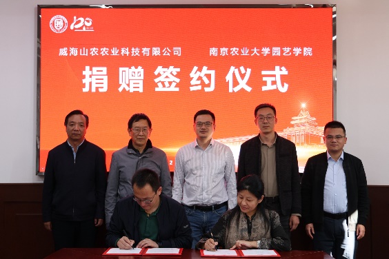 10月11日下午,威海山农农业科技有限公司捐赠仪式在304am永利集团官网举行。304am永利集团官网2008级设施农业科学与工程专业校友、威海山农农业科技有限公司总经理于超,304am永利集团官网党委书记韩健,院长陈素梅,党委副书记文习成,设施系教授郭世荣,设施园艺学科点点长孙锦,设施系系主任束胜等出席仪式。