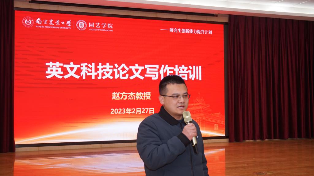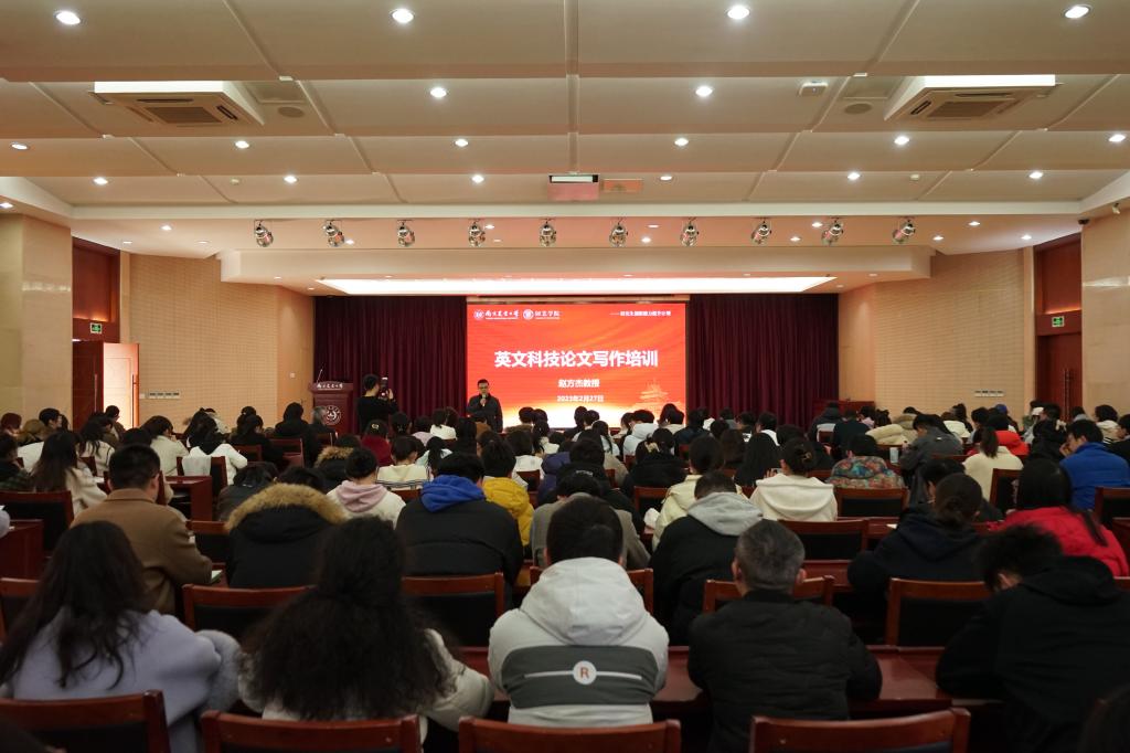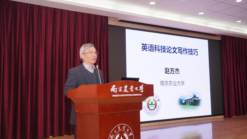 2月27日下午,304am永利集团官网联合资源与环境科学学院在金陵研究院三楼会议室举办科研创新能力提升计划专题培训,本期培训邀请资源与环境科学学院赵方杰教授作题为“英文科技论文写作”的报告。304am永利集团官网与资源与环境科学学院的研究生们共同参与,培训会由304am永利集团官网副院长束胜主持。