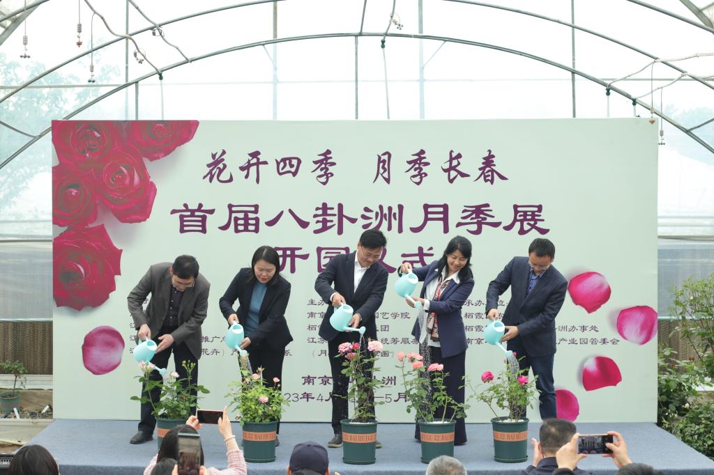 陈素梅等五位主要领导及负责人为八卦洲首届月季展开园