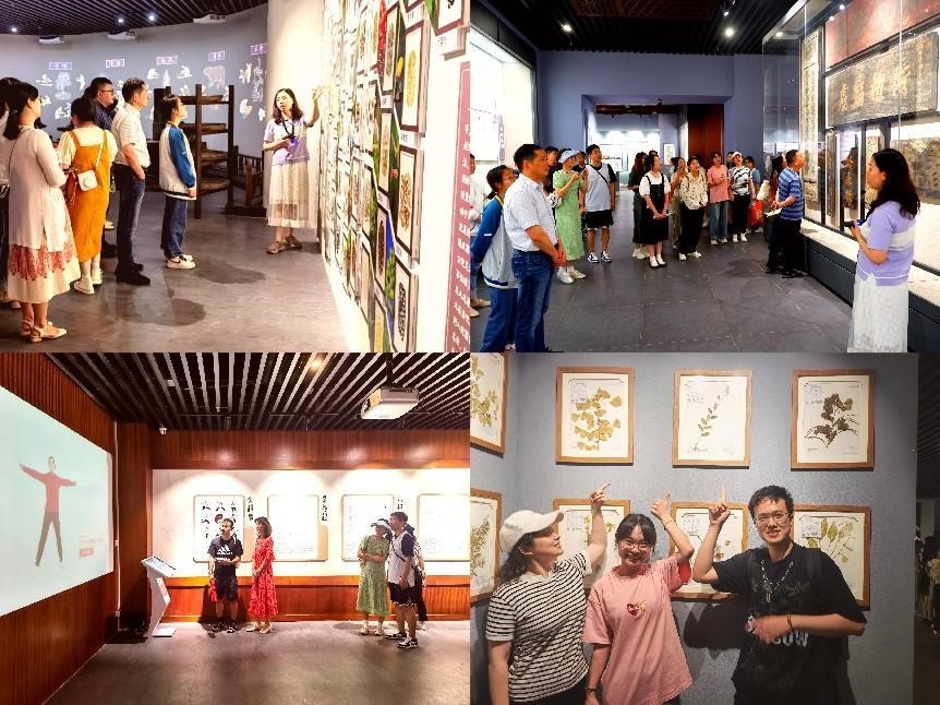 在场馆讲解员的带领下,支部一行师生党员分别参观了中国医史馆、江苏中医馆、中药馆、养生文化馆,沉浸式体验祖国传统中医药文化的价值与魅力,包括:仿真铜人经络穴位探索体验、中药处方抓药配伍尝试、中药道地产区探寻、药用植物生长发育全过程观察、珍稀名贵药材标本鉴赏以及太极拳五禽戏八段锦等养生保健体操学习等。
