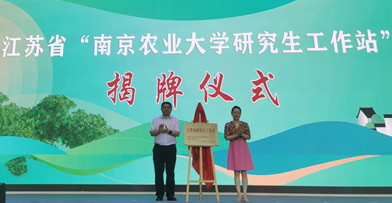 为发挥科技优势,强化人才培养,服务产业发展,助力乡村振兴,2023年7月9日,南京农业大学副校长董维春赴泰兴国家现代农业产业园“江苏省研究生工作站”调研。董维春副校长与泰兴市委副书记、市委宣传部部长张红霞共同为南京农业大学泰兴“江苏省研究生工作站”揭牌。