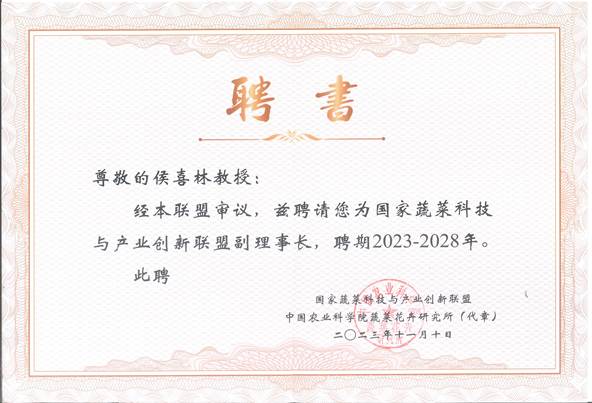 从刚刚结束的国家蔬菜科技与产业创新联盟大会获悉,南京农业大学侯喜林教授当选国家蔬菜科技与产业创新联盟副理事长。