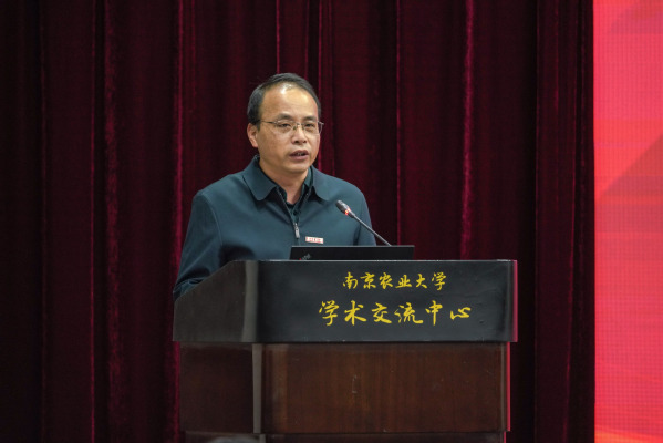 沈其荣院士向新当选的张绍铃院士表示祝贺。他勉励全校科技工作者,学习张绍铃院士持之以恒、坚持不懈的科研精神,扎根中国大地开展科学研究,坚守和聚焦产业技术的科学问题,艰苦奋斗、攻坚克难、迎难而上,为解决国家“三农”问题贡献南农智慧、提出南农方案。