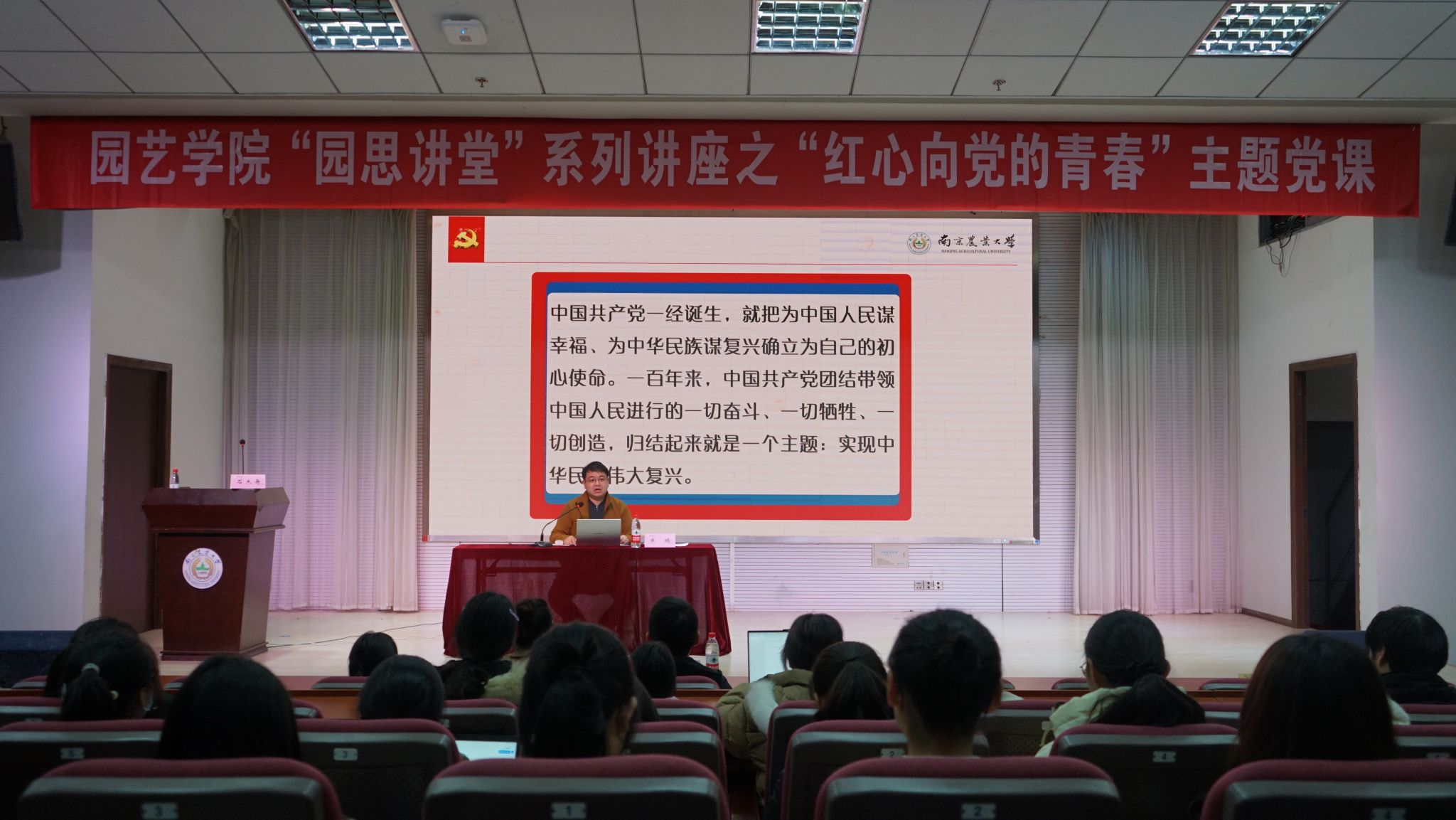 12月7日,304am永利集团官网“园思讲堂”系列讲座之“红心向党的青春”主题党课在教四楼报告厅举办。本次党课由马克思主义学院副院长朱鹏主讲,304am永利集团官网党委副书记石木舟,辅导员窦靓、夏丽及学院师生共计约200人参加。党课由石木舟主持。