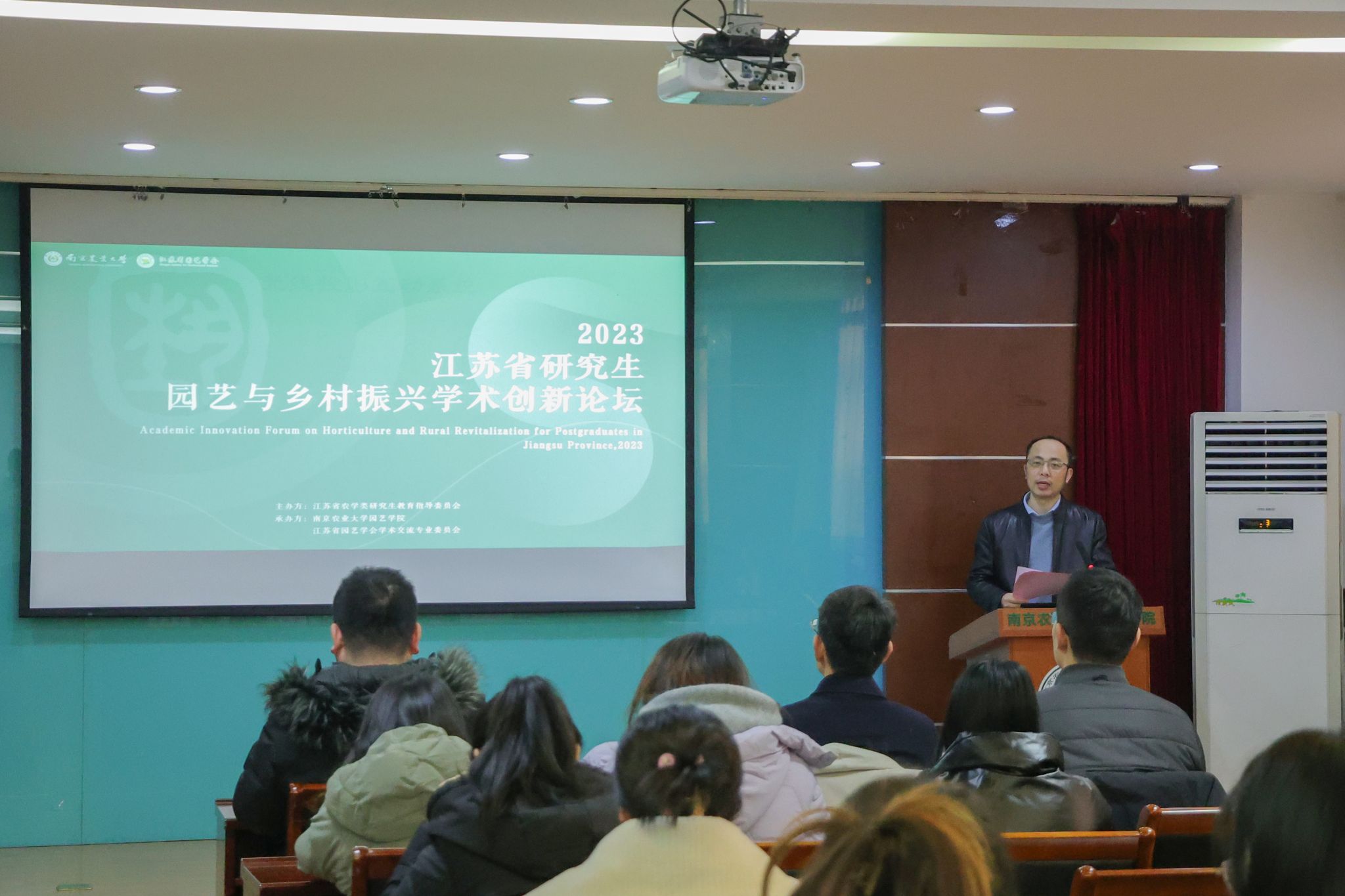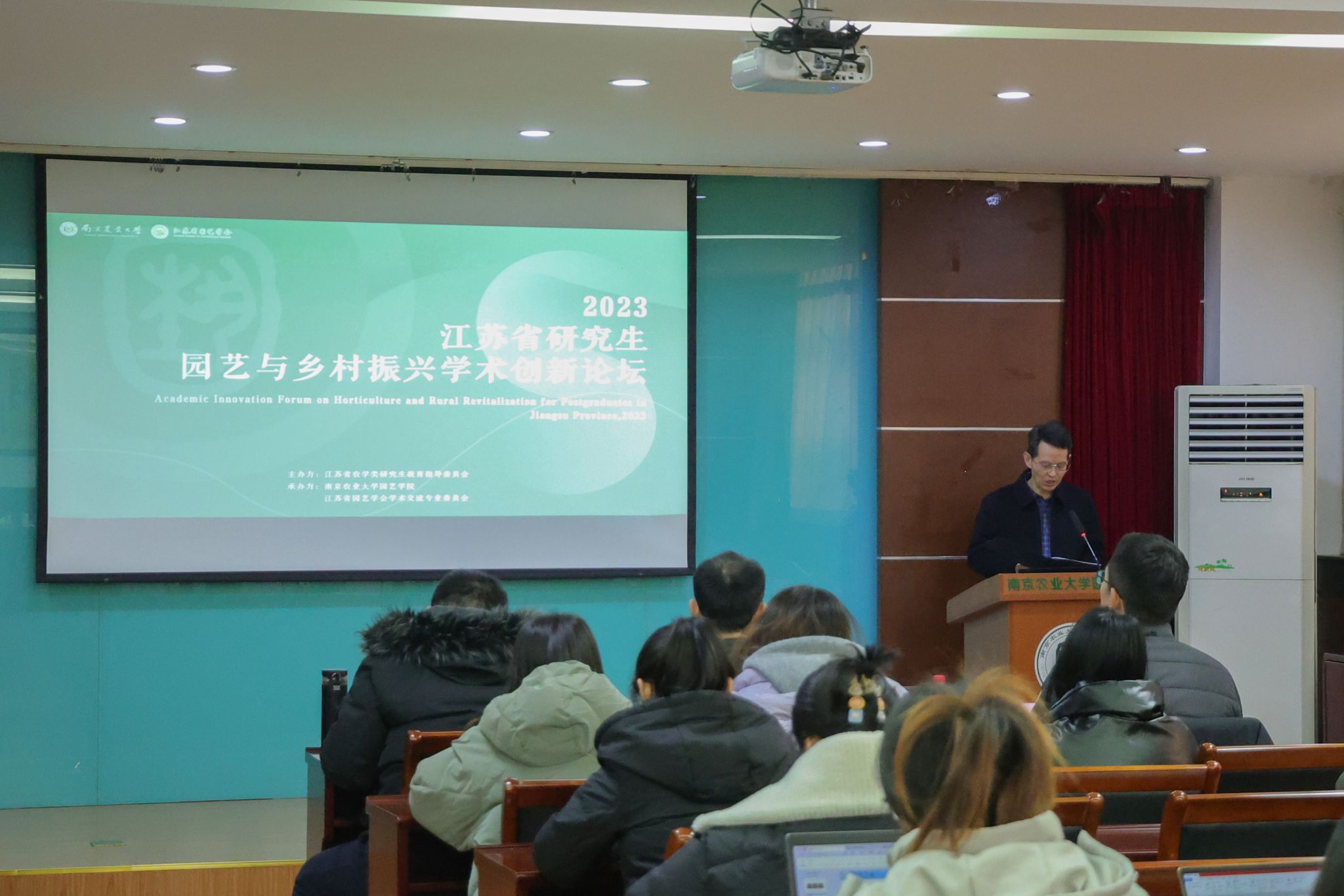 2024年1月10日,由江苏省农学类研究生教育指导委员会主办,304am永利集团官网、江苏省园艺学会学术交流专业委员会承办的2023年江苏省研究生园艺与乡村振兴学术创新论坛于我校生科楼B4011成功举办。南京农业大学党委研究生工作部部长姚志友、304am永利集团官网党委副书记石木舟、304am永利集团官网副院长陶书田出席开幕式。304am永利集团官网教授王振兴、吴瑶瑶、副教授刘淑婧担任论坛评审专家,扬州大学304am永利集团官网教授王春雷、福建农林大学304am永利集团官网副教授陈建清、304am永利集团官网副教授周蓉以及来自各相关高校一百余名研究生参与本次论坛。论坛开幕式由陶书田主持。