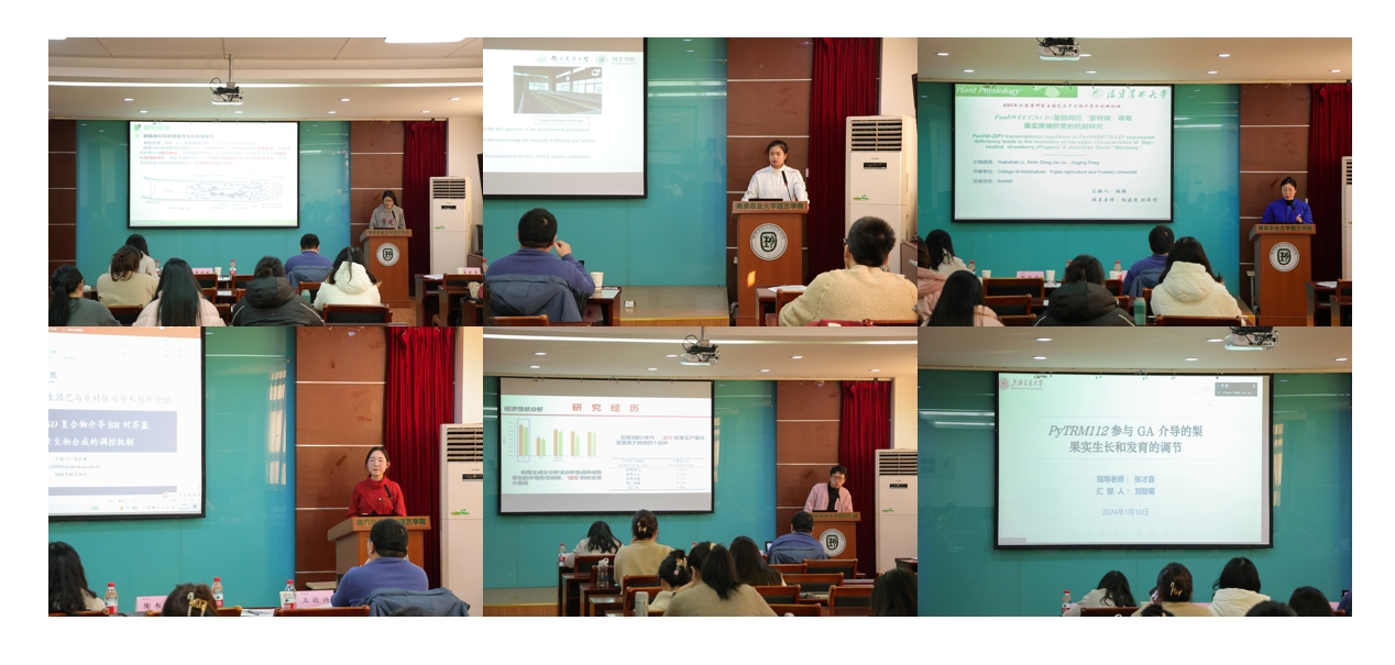 下半场由刘淑婧主持,四川农业大学硕士张晨璐、扬州大学硕士赵喆、上海交通大学博士刘勋菊分别做了题为《BZR1.1-CRTISO复合物介导BR对芥蓝类胡萝卜素生物合成的调控机制》、《扬州地区5个薄壳山核桃品种经济性状与营养成分的比较研究》、《PyTRM112参与GA介导的梨果实生长和发育的调节》的学术报告,报告展现了园艺领域研究者的科研创新能力。