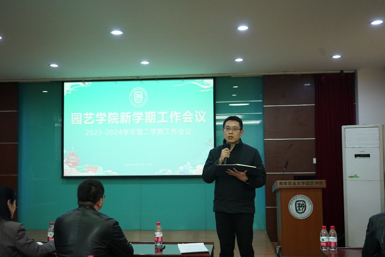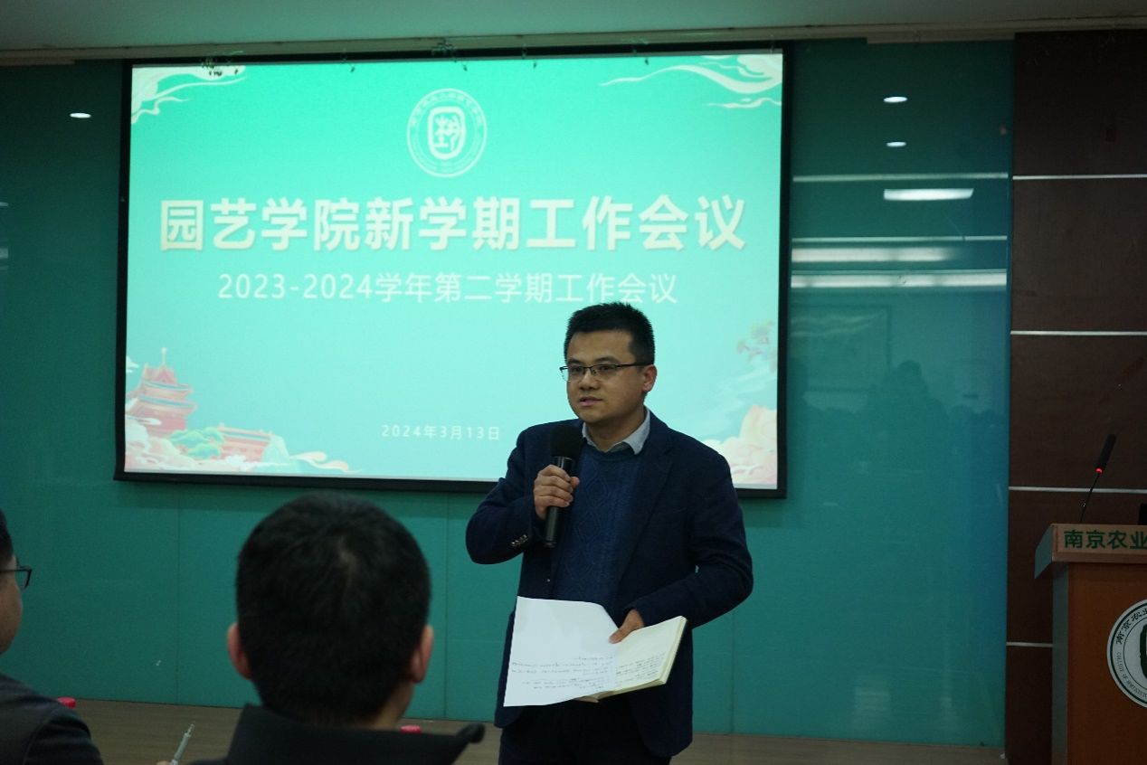 韩健首先回顾了过去一年学院取得的亮点成绩和成果突破,传达了学校第十二届委员会第十六次全体(扩大)会议精神,重点领学和解读了校党委书记王春春作的题为《在强国建设新征程上彰显南农新作为》和校长陈发棣作的题为《认识再强化 措施再精准 责任再压实 奋力推动学校高质量发展实现新跨越》的大会报告主要内容。他提出全体教师要统一思想、提高站位、凝心聚力、全力以赴,全面贯彻落实学校新学期各项决策部署。