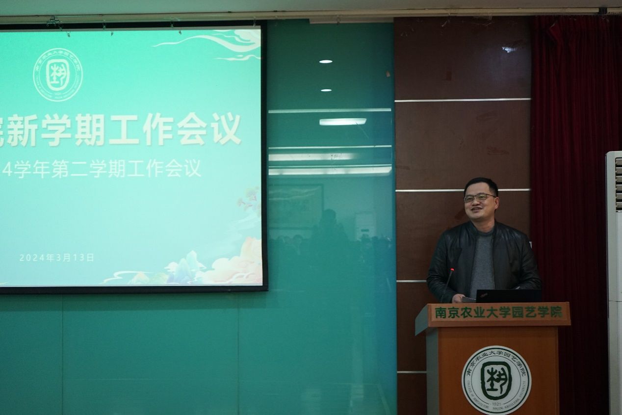 院长陈素梅作了题为《以新时代园艺精神 推动高质量发展》报告,围绕“抢抓机遇启新程、实干笃行建新功、组织保障举新措”三个维度进行了全面阐述。她首先提出,面向国家战略产业行业需求、面向”新生态位”、面向开放共享现代化新校区、面向高标准科创平台四个新使命、机遇,“园艺何为”的命题激发思考。随后她从2024年度学校目标考核指标任务和江苏省优势学科建设两项重大任务,党建思政、人才培养、师资队伍建设、科学研究、学科建设、国际合作与交流、社会服务等十项重点工作,全面部署了学院新学期重点工作。她表示,要以新校区搬迁为契机,聚焦学校“十四五”规划和学院可持续发展建设目标,把牢发展,抢抓机遇,改善“硬条件"的同时,提升"软实力",凝聚共识、形成合力,在新的起点上推动学院更高质量发展。