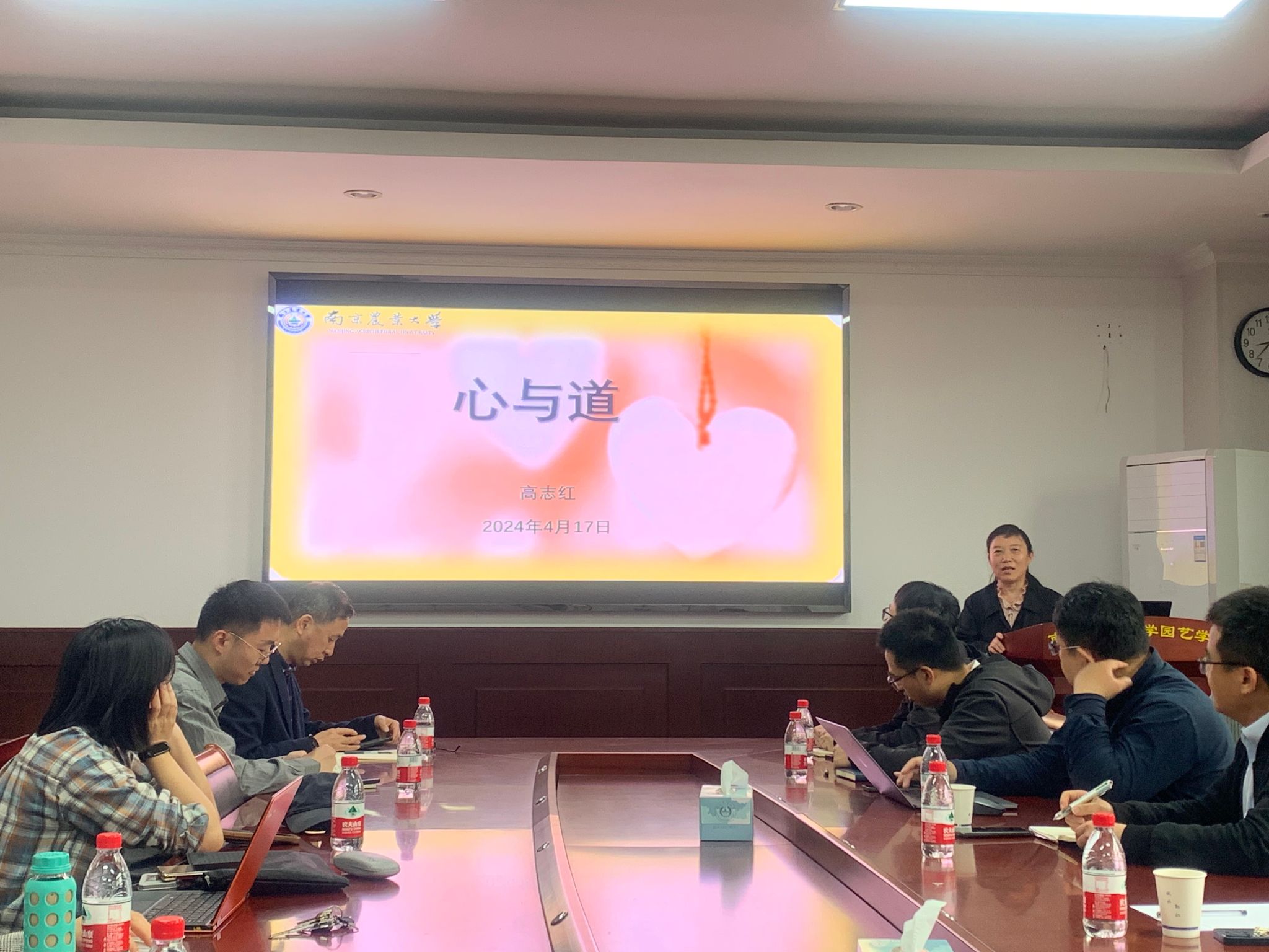 为深入贯彻落实《南京农业大学304am永利集团官网开展“加强一流质量文化建设,推动学校高质量发展”教育思想大讨论的通知》文件精神,引导学院专任教师进一步深化教育教学改革,全方位提升教育教学水平和人才培养质量, 2024年4月18日,304am永利集团官网举办了教育思想大讨论专题活动,邀请学院高志红教授作“心与道”教育教学教改论文写作的专题报告会。会议由束胜副院长主持,系主任、部分专任教师、辅导员、教学秘书参加了此次活动。