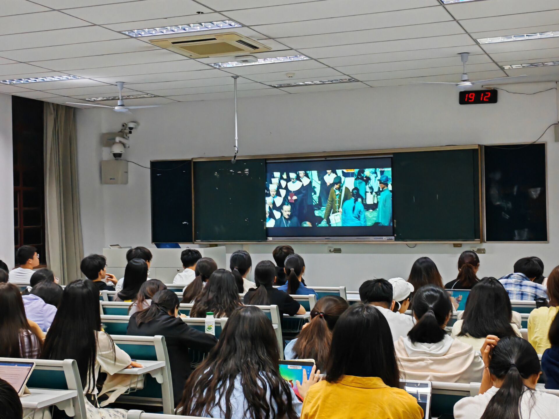 从1921年到2024年,百余载风雨漂泊,前辈们为新中国的独立、中华民族的复兴而奋不顾身的精神依然穿过时空震撼着同学们的心灵。透过小小的荧幕,同学们进一步了解我们的民族所经历过的苦难,感受先辈们许身报国的伟大信念。