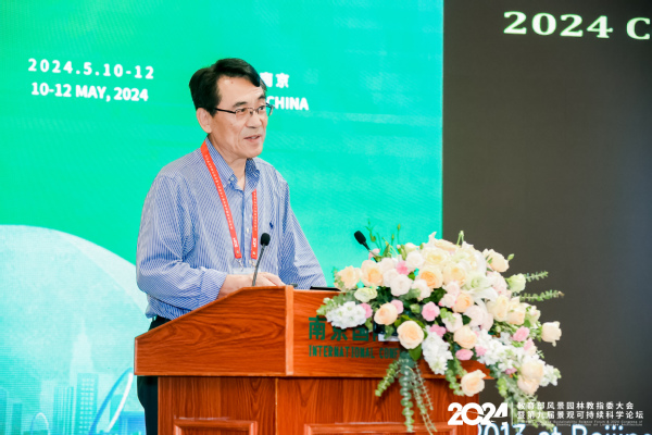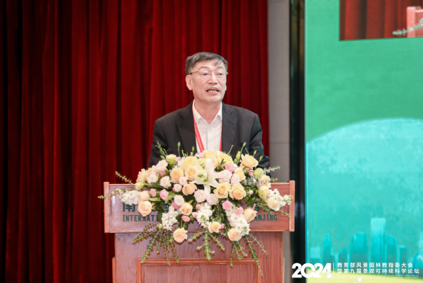 陈发棣代表学校致欢迎辞。他介绍了南京农业大学的办学情况,他指出,学校一直以来坚持以立德树人为根本,以强农兴农为己任,以高质量发展为引领,在生态修复、景观规划、农业文化遗产等领域做了大量的有益探索,取得了丰硕的成果,他强调,要重视发挥风景园林教指委大会、景观可持续科学论坛在行业内的引领作用,并希望以此次大会的成功举办为契机,为风景园林学科的发展增添新动能,为可持续发展目标的实现增添新动力。