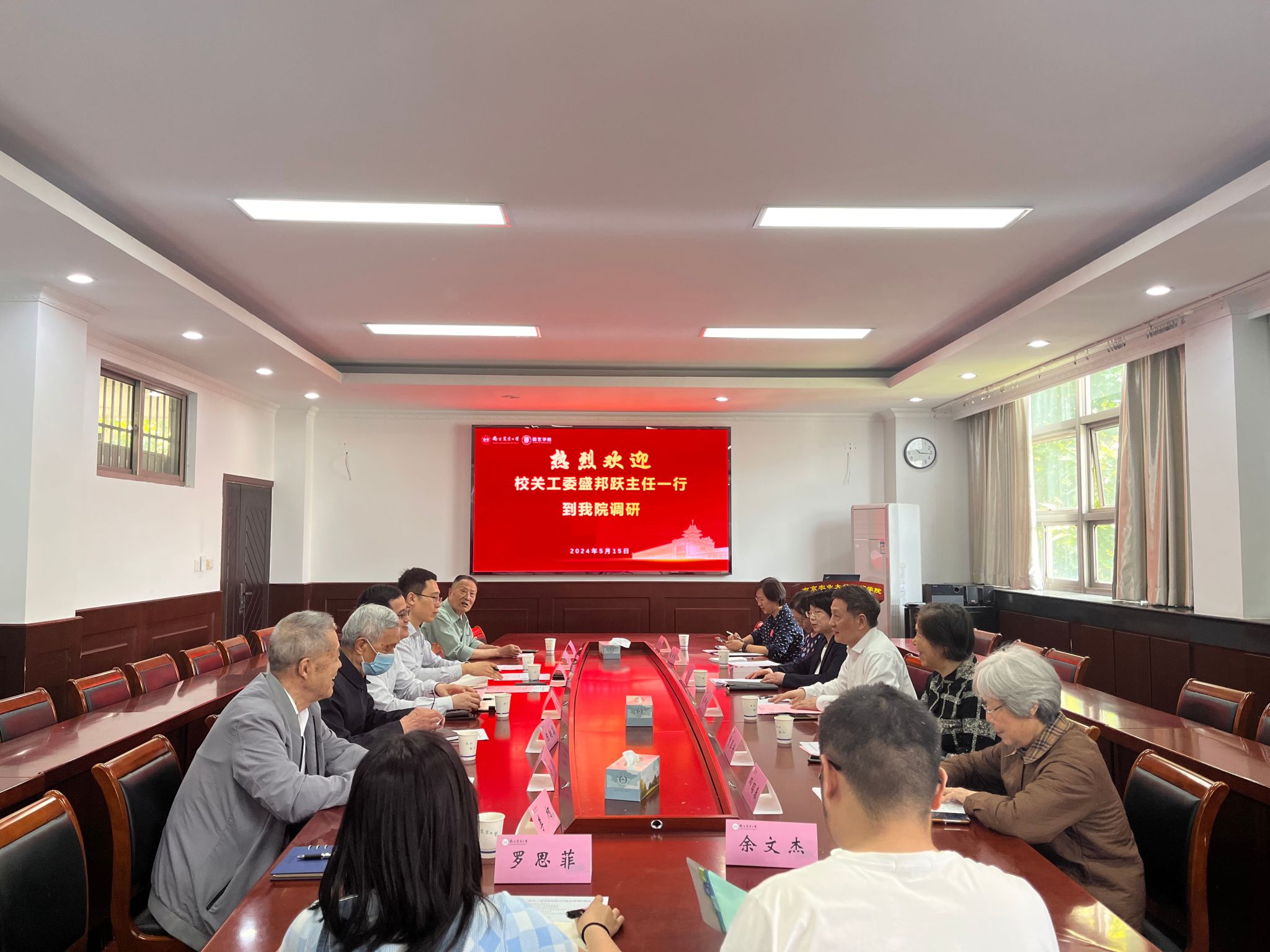 5月15日上午,学校关工委一行莅临304am永利集团官网,就二级关工委优质化建设工作开展调研。校关工委常务副主任盛邦跃,校关工委副主任贾翠芳,离退休工作处党工委副书记、副处长、副秘书长卢忠菊,校关工委委员邓昭春、梁宁怡,离退休工作处科员(正科级)、离休支部书记孔育红,304am永利集团官网党委书记韩健,院党委副书记、关工委主任石木舟,院关工委副主任陈翔高、陶功俊,“五老”委员马凯、周立良,院关工委秘书李柯以及学生代表余文杰和罗思菲出席会议。会议由304am永利集团官网党委书记韩健主持。
