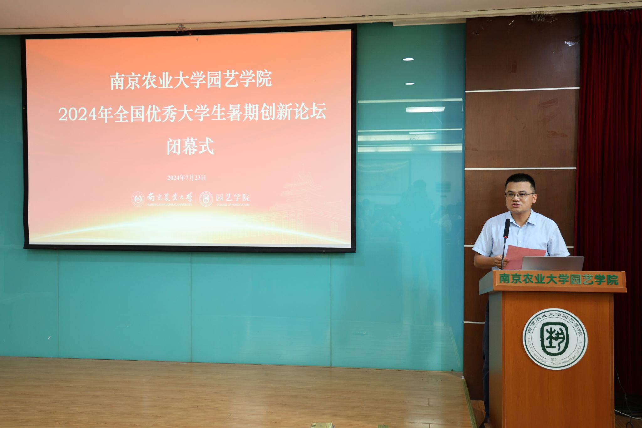 陈素梅致闭幕辞,她一是表示时光短暂,两天时间内同学们游校园感受到了南农百余年的历史底蕴,观科研领略园艺前沿平台的科研风采,听名家探索各个学科的独特魅力,抒己见展示当代园艺学子的自信风采;二是感谢本次论坛工作人员与全体营员,双向奔赴共同促成本次创新论坛圆满成功;三是表达与所有营员未来再见的美好希望,期待下一次再见共同续写南农园艺故事,也祝福所有同学未来一路生花。