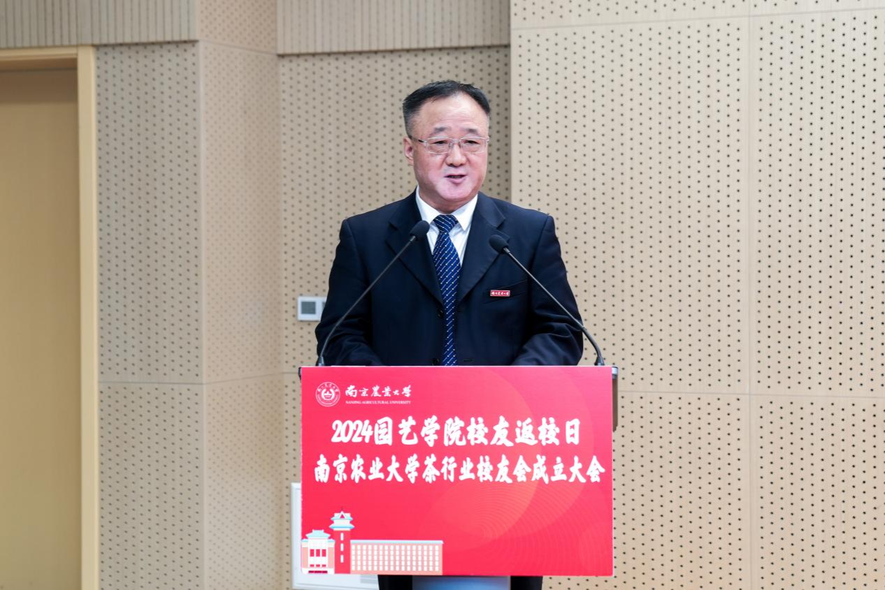 单正丰副校长首先对各位嘉宾和校友的到来表示热烈欢迎和衷心感谢,祝贺茶行业校友会正式成立。他指出学校近些年在学科发展、办学空间拓展和人才队伍建设等多方面取得了一定成绩,离不开社会各界和校友们对学校的热爱和无私奉献。希望校友们通过多层级校友会平台建设,不断加强交流与合作,达成多方共赢,为南农发展作出新的更大贡献!