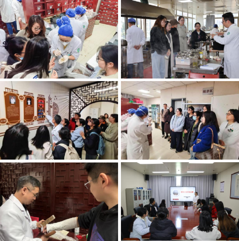 在杜则玲的带领下,中药研究生支部的党员们参观了医院部分科室,增进了对专业知识的认识。在中药房,同学们学习了解到药房各分区构造功能,鉴别了秋冬季节使用频率较高的补益类中药饮片,如黄芪、甘草、党参等,并与药房中药师现场讨论大宗药材的道地性,同时,体验了使用传统称量工具进行抓药配方;在煎服室,同学们了解到医院代煎汤剂的全流程,并与中药师共同探讨汤剂煎煮使用器皿及煎煮工艺流程可优化项等学理问题;在骨伤正骨室,科主任带领同学们沉浸式体验了传统中医如何治疗骨伤,并与西医治疗做协同对比,同时带领同学们学习日常养护颈椎小技巧;在皮肤科,同学们认真听取了专家医师关于“火针以热引热”外治急症皮肤病的专题报告。