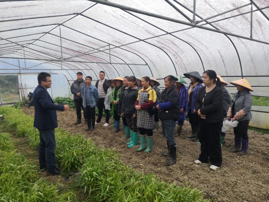 针对冬季蔬菜和草莓生产关键时节,束胜前往麻江县贤昌镇高枧村,在大棚内为该村种植户上了一堂“设施蔬菜高效生产技术”的培训课,现场指导冬季蔬菜安全生产,并细致解答种植户关于蔬菜种植和草莓育苗过程中存在的问题。