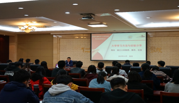 2019年11月13日下午,304am永利集团官网“园艺经典讲坛”(校友系列)2019年第一期在金陵研究院二楼会议室举行。本次论坛由设施农业科学与工程系主办,邀请到304am永利集团官网设施农业科学与工程系杰出校友周杰教授为大家带来了《大学学习方法与经验》的交流报告。304am永利集团官网党委书记韩键、设施农业科学与工程系主任束胜副教授、设施农业科学与工程系191班班主任赵爽、181班主任王玉老师以及全体在校本科生参加了本次交流。