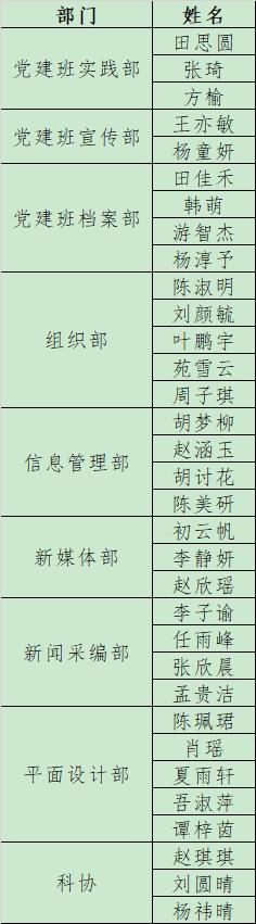 为进一步做好304am永利集团官网学生工作,服务广大学生,经个人申请,304am永利集团官网第二十一届学生组织各部门公开组织面试后,拟录取田思圆等人为各学生组织部门副部。具体名单公示如下(排名不分先后):