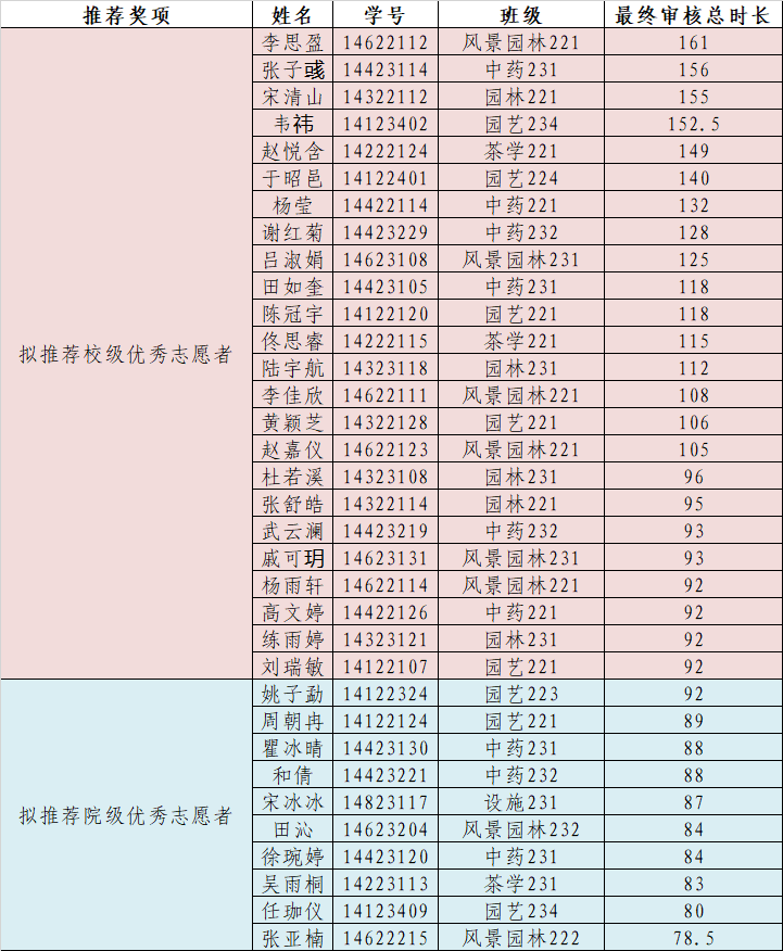 后续如有学院“拟推荐校级优秀志愿者”名单同学由其他申请渠道申请成功,该同学所占学院名额将释放,并在院级优秀志愿者中依次递补。