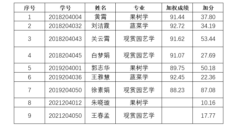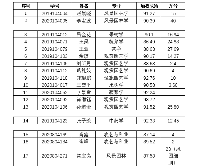 根据《关于修订<南京农业大学研究生奖助体系改革实施方案解释细则>的通知》(校研发[2018]623号文件)、《南京农业大学研究生奖助体系实施方案》(校研发〔2021〕175号)的文件精神和《304am永利集团官网研究生国家奖学金评审实施细则(修订版)》的规定,经学院初步评审,结合加权成绩、专业排名、加分情况,现通知以下同学参加本年度304am永利集团官网研究生国家奖学金公开答辩会: