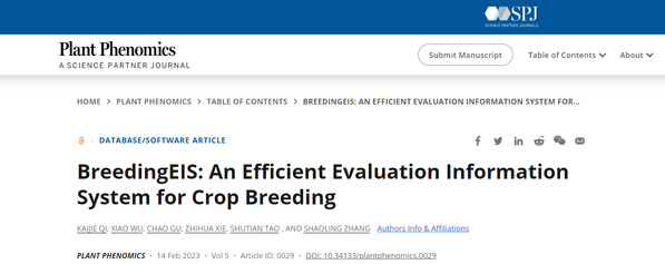 近日,Plant Phenomics在线发表了南京农业大学题为“BreedingEIS: an efficient evaluation information system for crop breeding”的文章,该研究基于当前流行的计算机、智能手机和近场通信(NFC)技术,开发了一个免费、安全的新育种信息平台(BreedingEIS,“云上后稷”),详细介绍了该育种系统的基本原理、设计、部署和使用方法,并指出了该育种系统的未来发展计划。