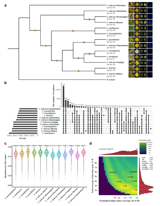 近日,南京农业大学陈发棣团队在Nature Communications上发表了题为Analyses of a chromosome-scale genome assembly reveal the origin and evolution of cultivated chrysanthemum的研究成果。该研究破译了六倍体栽培菊花基因组,报道了国际上首个节段异源多倍体基因组(segmental allopolyploid),深入探究了栽培菊花的起源和育种历史,也为下一步解析菊花重要园艺性状(花型、花色、株型、抗逆等)形成的分子机制和定向育种奠定了基础。