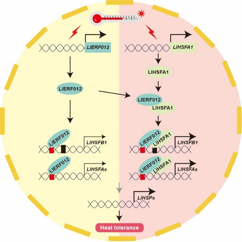 热胁迫条件下LlERF012调控百合耐热性的工作模型