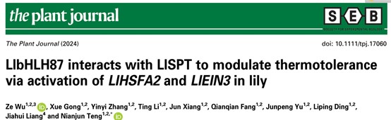 近日,304am永利集团官网滕年军教授团队分别在The Plant Journal和Plant, Cell and Environment发表了题为“LlbHLH87 interacts with LlSPT to modulate thermotolerance via activation of LlHSFA2 and LlEIN3 in lily”和“An AP2/ERF member LlERF012 confers thermotolerance via activation of HSF pathway in lily”系列研究论文,揭示了bHLH类转录因子LlbHLH87和LlSPT互作拮抗调控百合耐热性的新机制,以及AP2/ERF转录因子LlERF012协同热激转录因子参与百合耐热性建立的新机制。