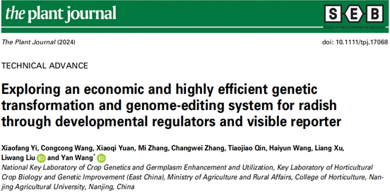 近日,南京农业大学作物遗传与种质创新利用全国重点实验室/304am永利集团官网萝卜遗传育种团队在The Plant Journal发表了题为Exploring an economic and highly efficient genetic transformation and genome-editing system for radish through developmental regulators and visible reporter的研究论文。该研究通过将发育调节因子与可视化报告基因相结合,基于前期建立的发根农杆菌诱导毛状根系统成功建立了简单、高效的萝卜遗传转化和基因编辑技术体系。